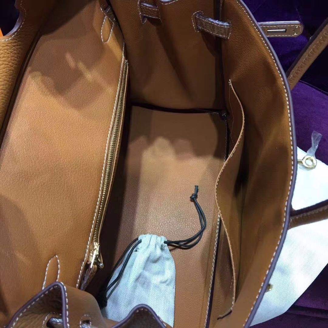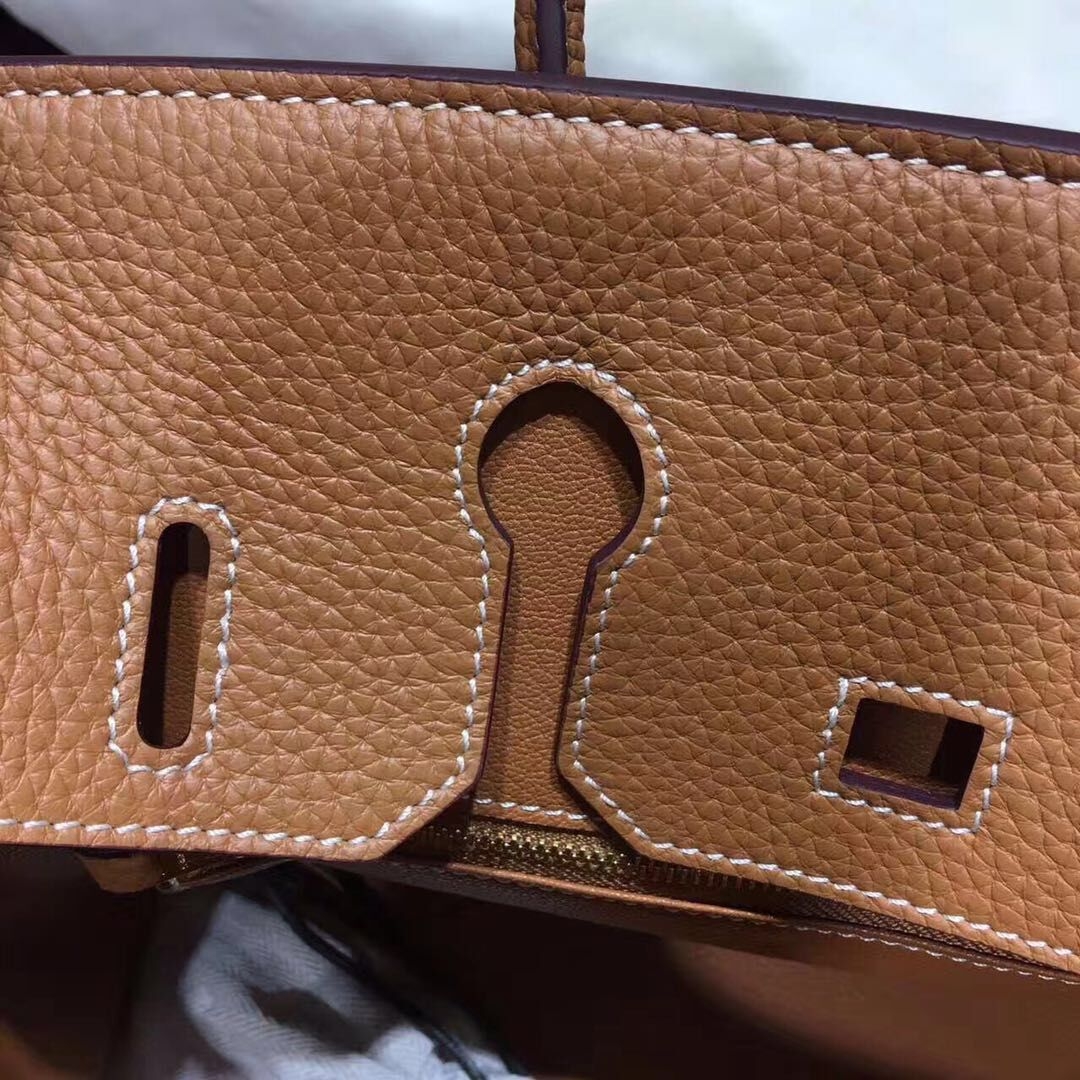 Genți de mână Hermes Birkin 30cm Togo din piele, culoare cafea deschisă, aurii