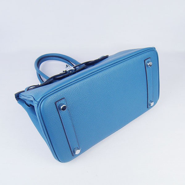 Genți de mână Hermes Birkin 30cm Togo din piele albastru-argintiu