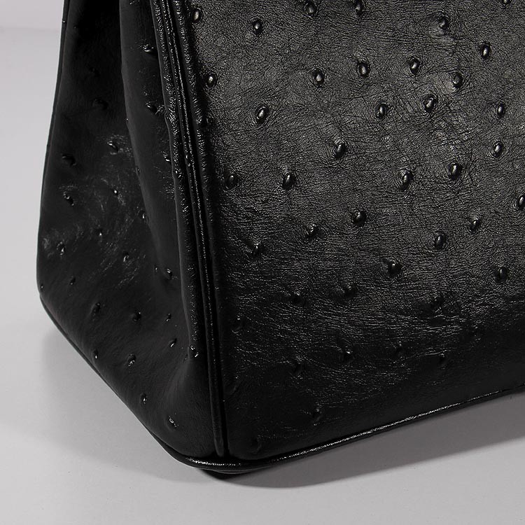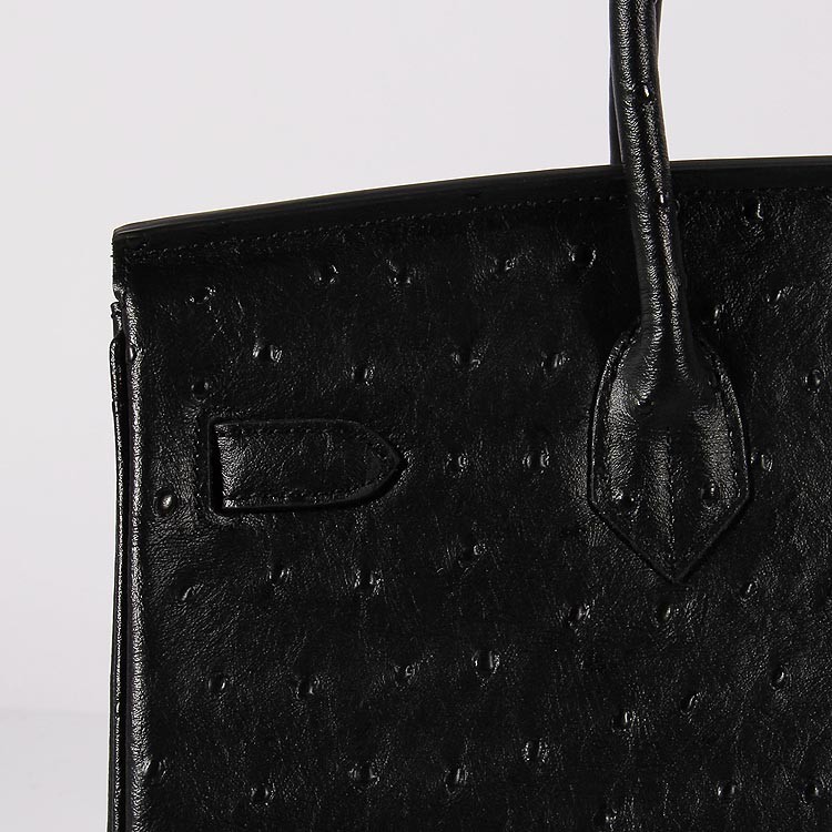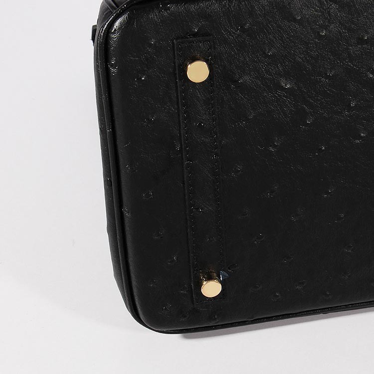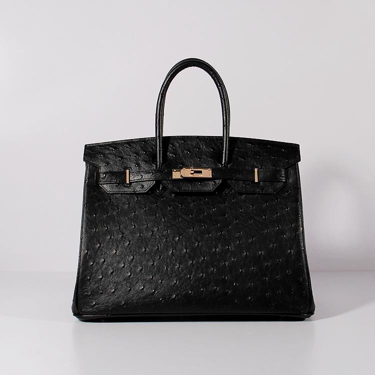 Geantă Hermes Birkin 35cm din piele de struț, neagră și aurie