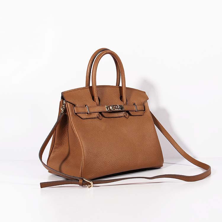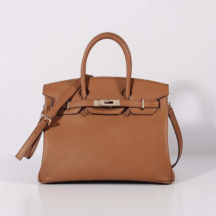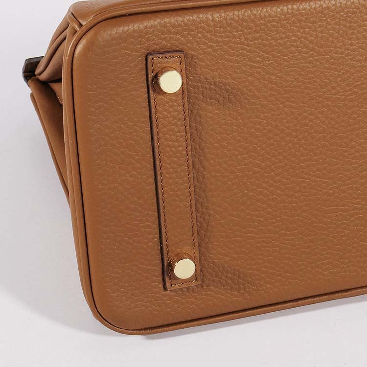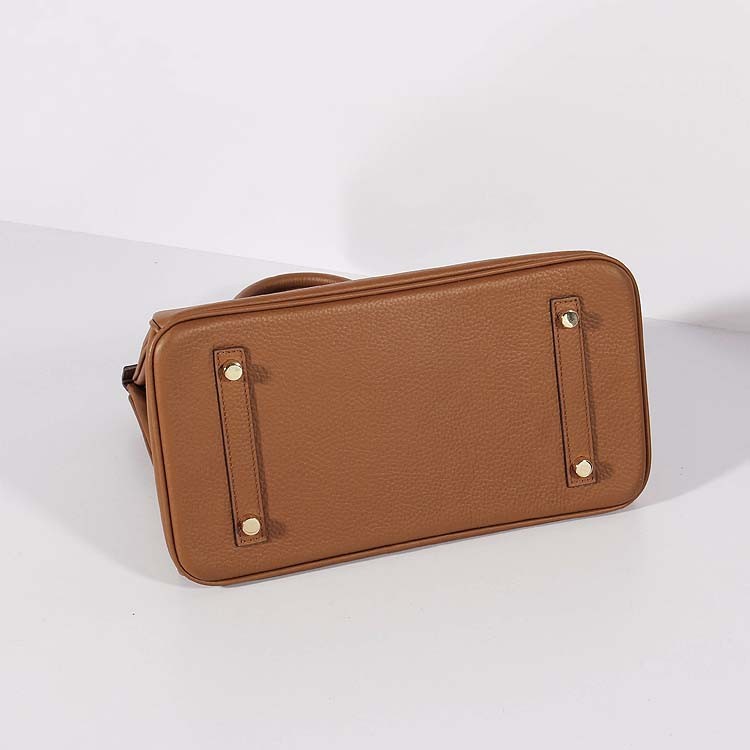Geantă Hermes Birkin 30cm din piele Togo cu curea, culoare cafea deschisă, auriu