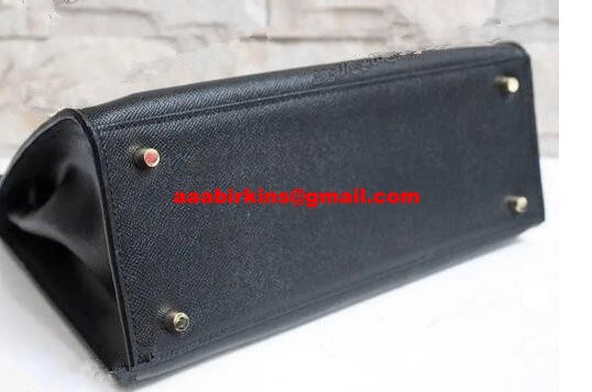 Geantă Hermes Kelly 32cm Epsom din piele neagră aurie