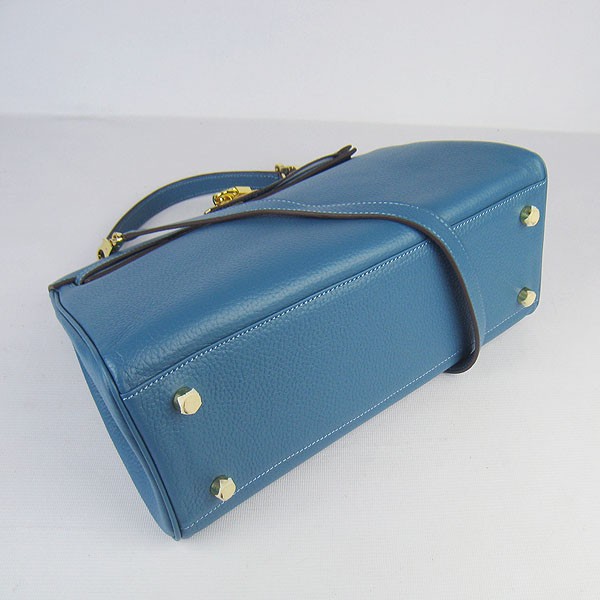 Geantă de mână Hermes Kelly 32cm Togo din piele albastră/aurie