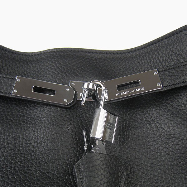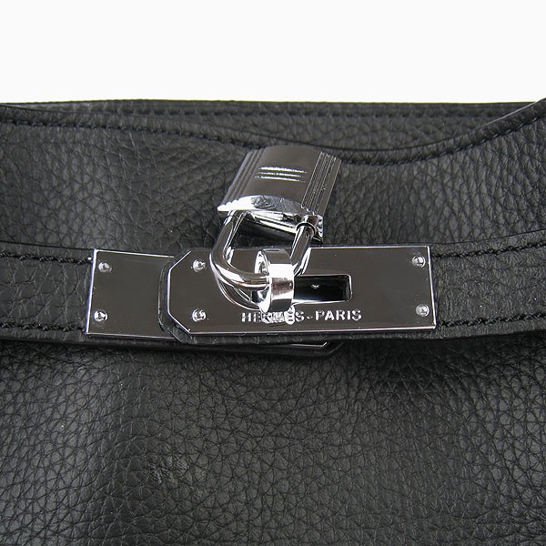 Geantă de umăr Hermes So Kelly 28cm Togo din piele neagră argintie