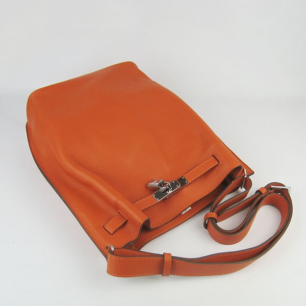 • Geantă de umăr Hermes So Kelly 28cm Togo din piele portocalie argintie