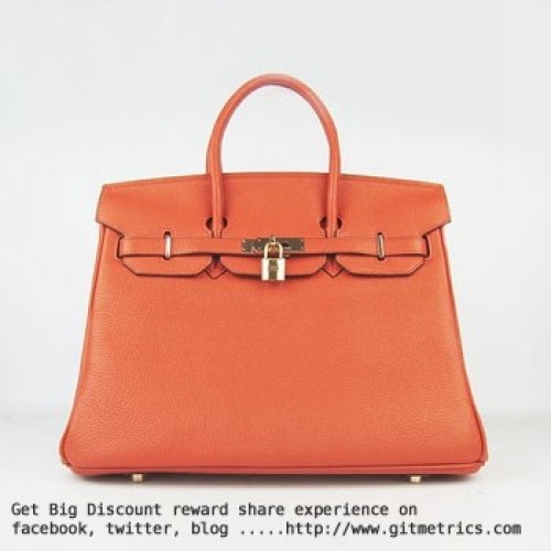 Genți de mână Hermes Birkin 35cm Togo din piele portocalie aurie