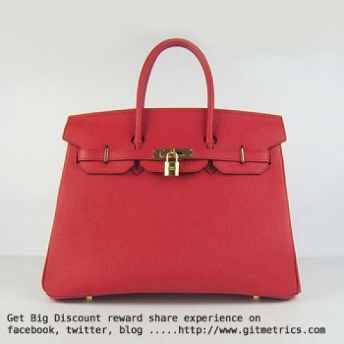 Genți Hermes Birkin 35cm piele de vită cu venă roșii aurii