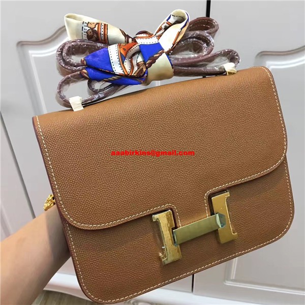 Geantă Hermes Constance 23cm piele Epsom camel auriu