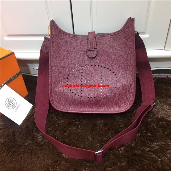 Geantă crossbody Hermes Evelyne III Togo din piele, culoare vișinie