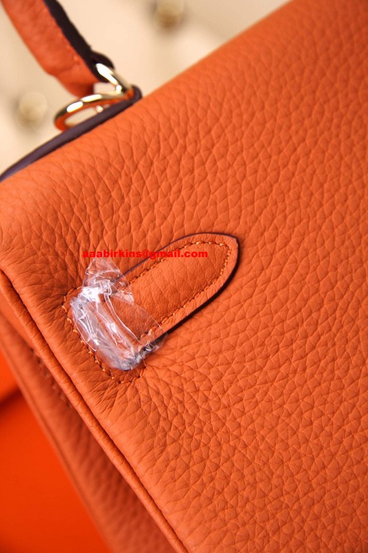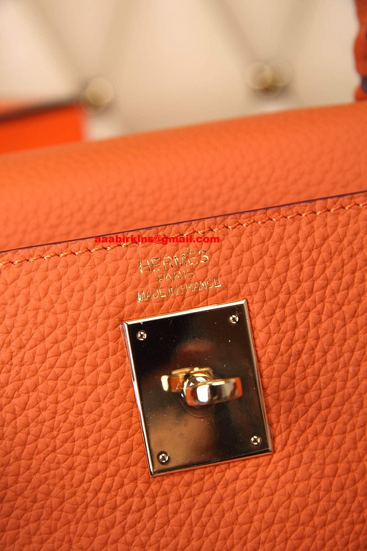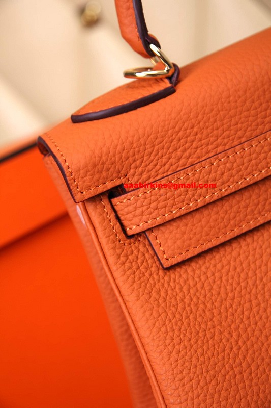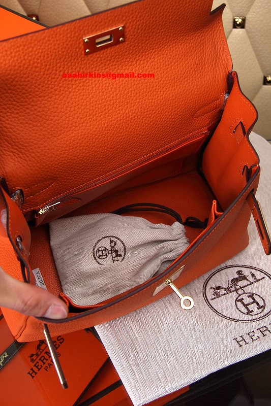Geantă Hermes Kelly 32cm Epsom din piele portocalie aurie