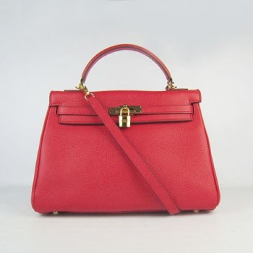 Geantă de mână Hermes Kelly 32cm Togo din piele roșie/aurie