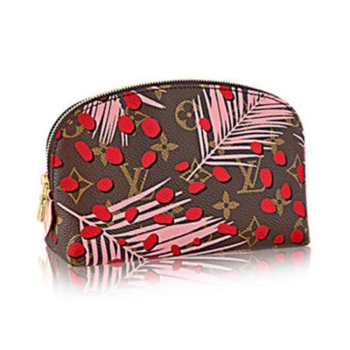 Această geantă compactă pentru cosmetice din pânză Monogram, personalizată cu imprimeul emblematic Jungle al acestui sezon, se strecoară ușor într-o geantă sau valiză. Deschiderea sa mare cu fermoar permite accesul facil la conținutul din interior.