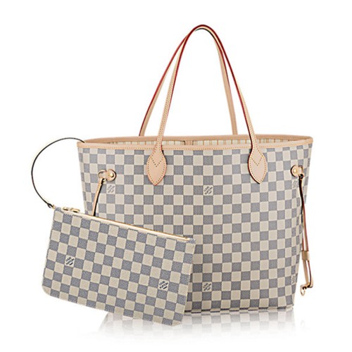 Legendara Neverfull: întotdeauna exact ceea ce ai nevoie. Încăpătoare, dar nu voluminoasă, structurată, dar suplă, se potrivește atât în oraș, cât și la țară. Strânge șireturile laterale și gata! este o geantă elegantă de oraș. Slăbește-le și ai o geantă tote șic și practică. Mânerele subțiri din piele se potrivesc peste umăr sau pe braț. Prezentat aici în pânză Damier Azur.