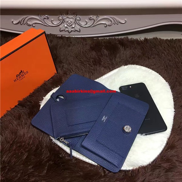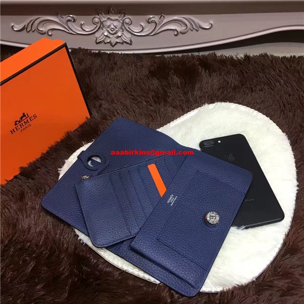 Portofel Hermes Dogon din piele Togo H001 Albastru închis