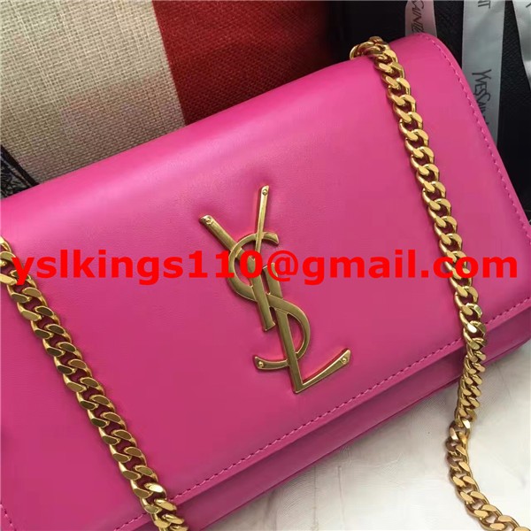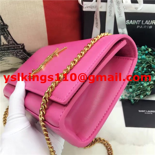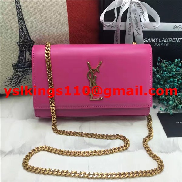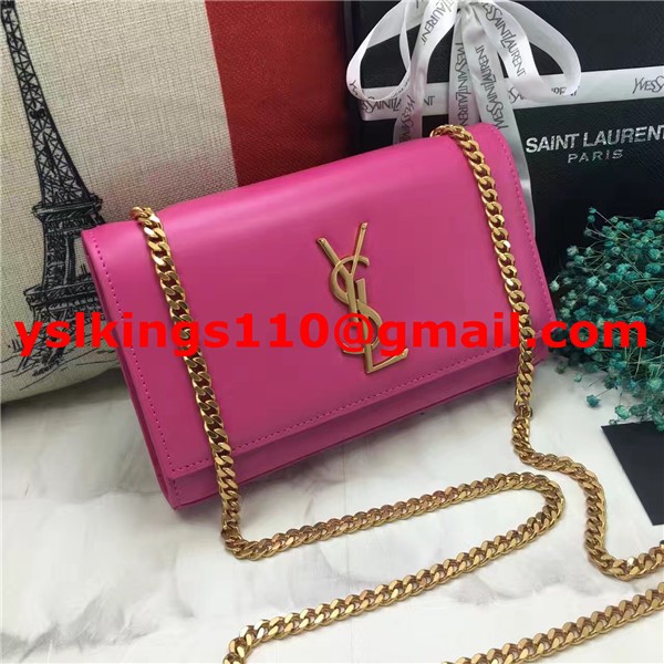 Geantă YSL din piele netedă cu lanț, 22 cm, roz