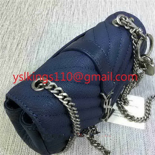 Geantă mică YSL Envelope cu lanț, din piele de capră, albastră, 18 cm