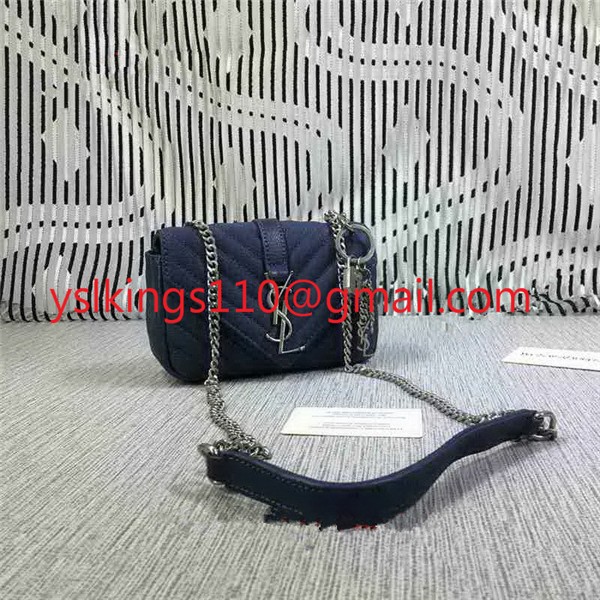 • Geantă mică YSL Envelope cu lanț, din piele de capră, albastră, 18 cm