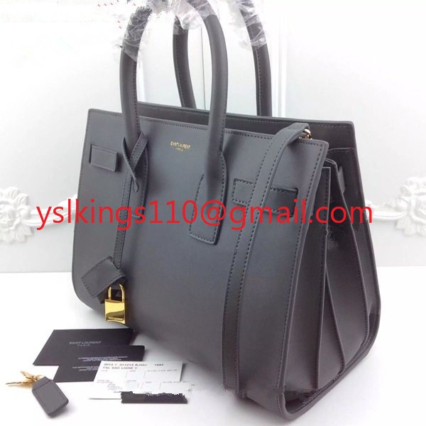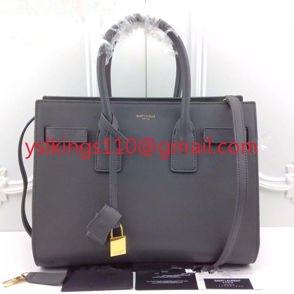 Genți YSL gri Downtown din piele de vacă
